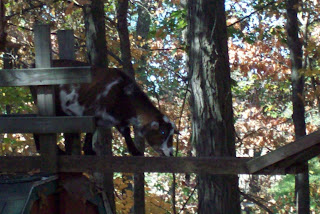 He is enjoying the leaves! Often times he tries to eat them.... Tuesday, October 19, 2010